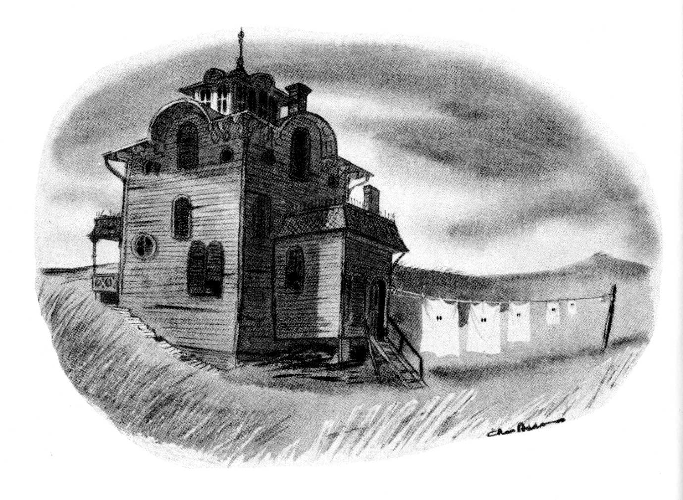 Their house is the genaric haunted mansion: it has a moat, a freaky door bell, bats in the bellfree, the works.