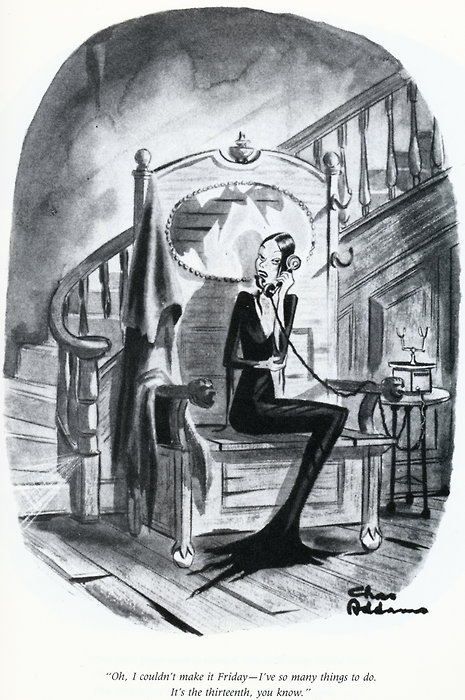 Cartoonist Charles Addams was born on January 7, 1912, in Westfield, New Jersey. His dark, some might say macabre, humor became an institution at The New Yorker, where he worked for more than five decades. His famous "Addams Family" cartoons later formed the inspiration for the 1960s television comedy of the same name.